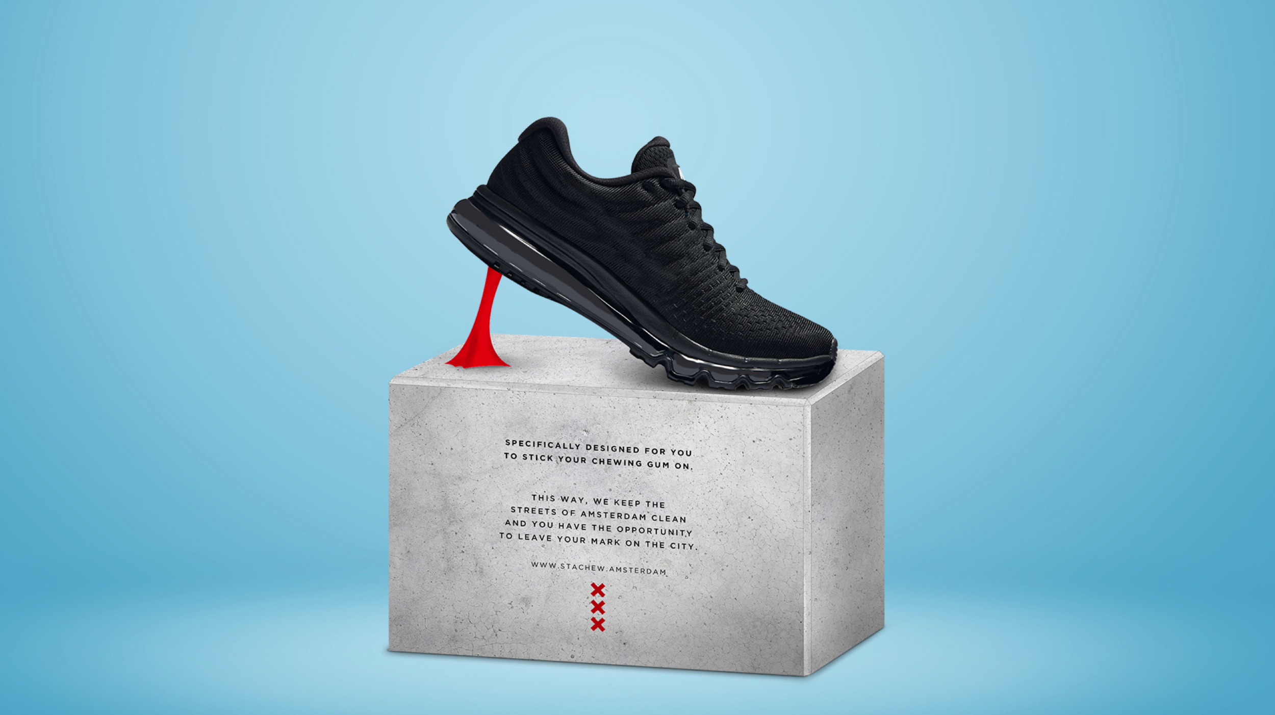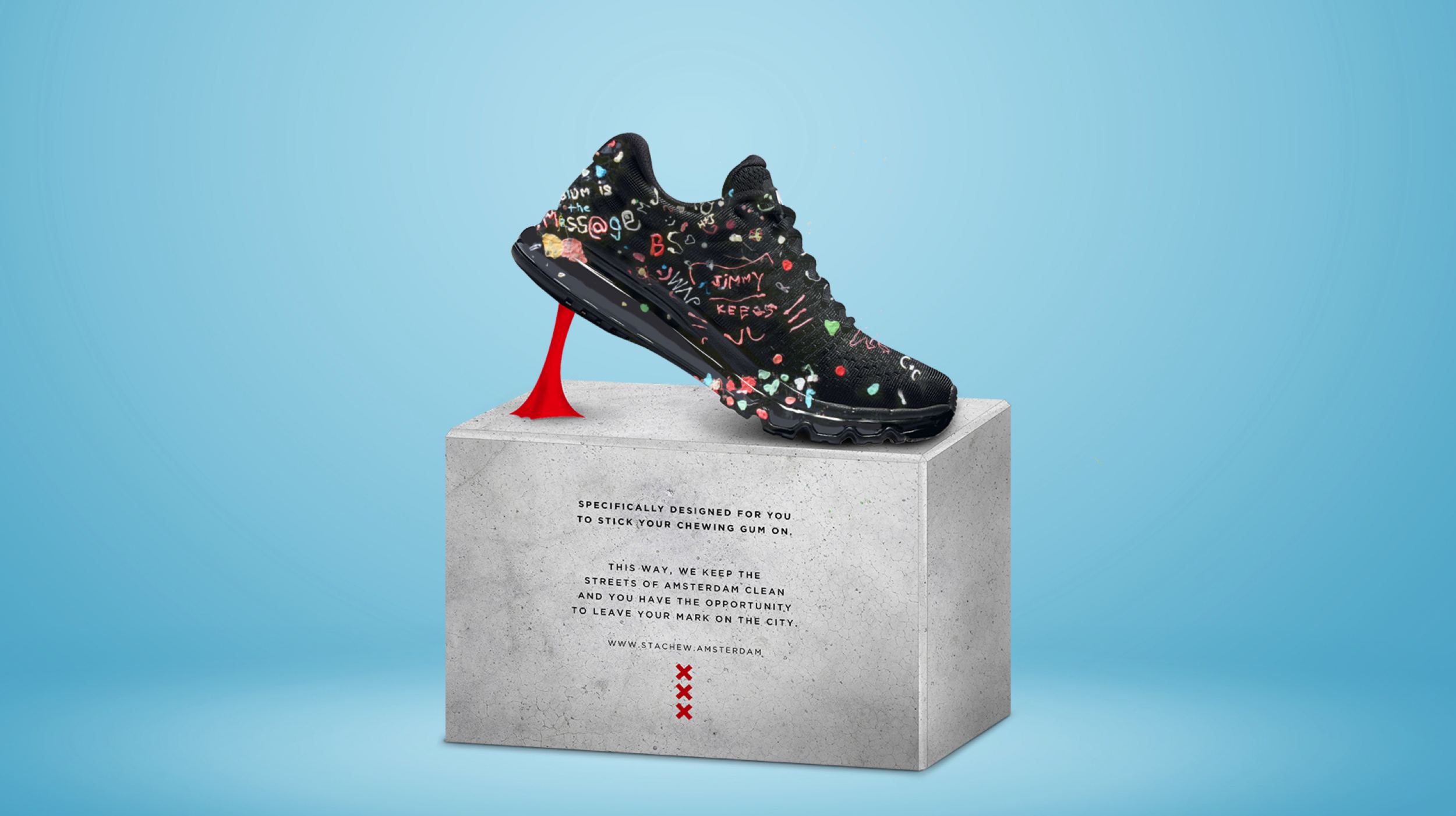 Together with a good friend and awesome creative: Stefan Apswoude we came up with the first Statue that reduces the amount of gum on the streets of Amsterdam. Why a statue you might ask. Well, we like weird funny projects, and this is one of them.
